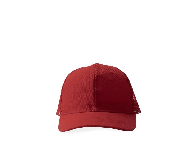 Boné de aba curva confeccionado em poliéster e tela respirável em nylon.